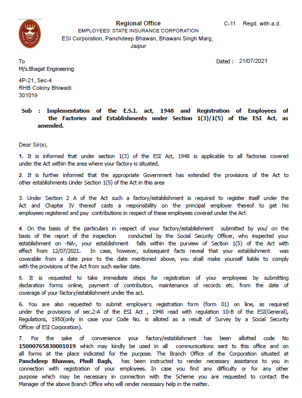 ESIC Certificate