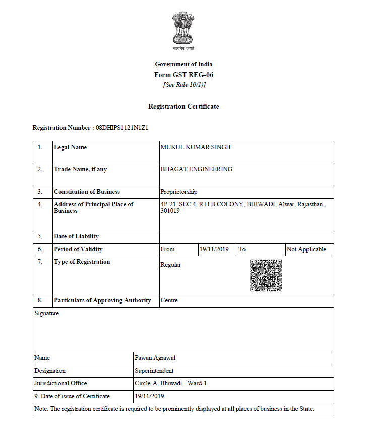 GST Certificate since 2019