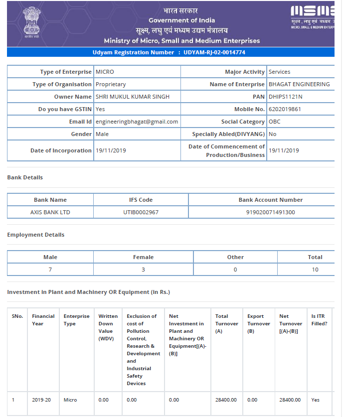 MSME Certificate